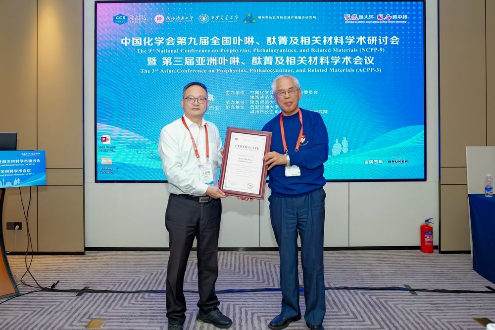 October 26, 2025, Prof. Fang Yu attended the closing ceremony of the 9th National Conference on Porphyrins, Phthalocyanines and Related Materials (NCPP-9) and the 3rd Asian Conference on Porphyrins, Phthalocyanines and Related Materials (ACPP-3), and co-chaired the plenary report session with conference chairs Prof. Jiang Jianzhuang and Prof. Cao Rui.