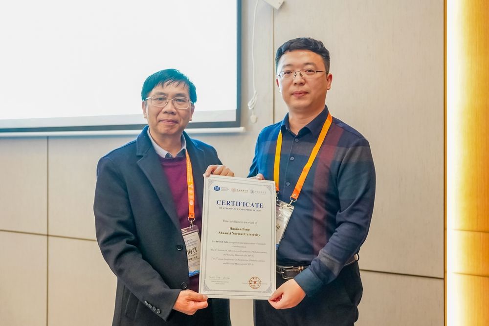 Prof. Peng Haonan, Assoc. Prof. Liu Taihong, and Assoc. Prof. Bo Xin from the Institute of New Concept Sensors and Molecular Materials at Shaanxi Normal University attended the conference and presented reports titled “Dynamic Assembly, Device Integration, and Gas-Phase Sensing Applications of Fluorescent Functional Molecules”, “Excited-State Dynamics Regulation and Two-Photon-Excited Fluorescence” and “Mild-Conditional Preparation of the Efficient Nitrogen Doped Catalysts for Alkaline Water Electrolysis” respectively.