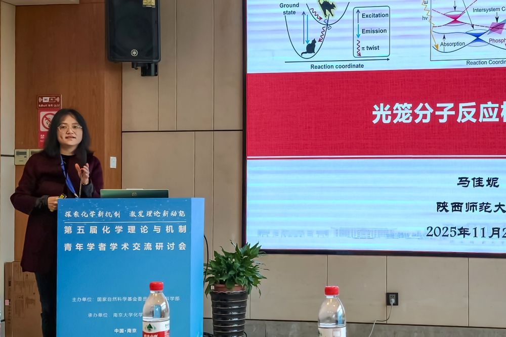 From November 21 to 23, 2025, Prof. Ma Jiani from the Institute of New Concept Sensors and Molecular Materials at Shaanxi Normal University attended the Fifth Academic Exchange Symposium for Young Scholars in Chemical Theory and Mechanisms, hosted by the Chemistry Division of the National Natural Science Foundation of China in Nanjing, where she presented a report titled “Research on the Reaction Mechanism of Photocage Molecules”.