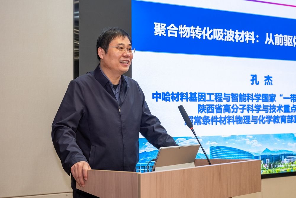 Prof. Kong Jie presented the latest research findings on polymer-based absorptive materials, covering material design, synthesis, and their applications in electromagnetic wave absorption. He emphasized the significance of metamaterials in modern technology and shared his team’s recent advancements and future research directions in this field.