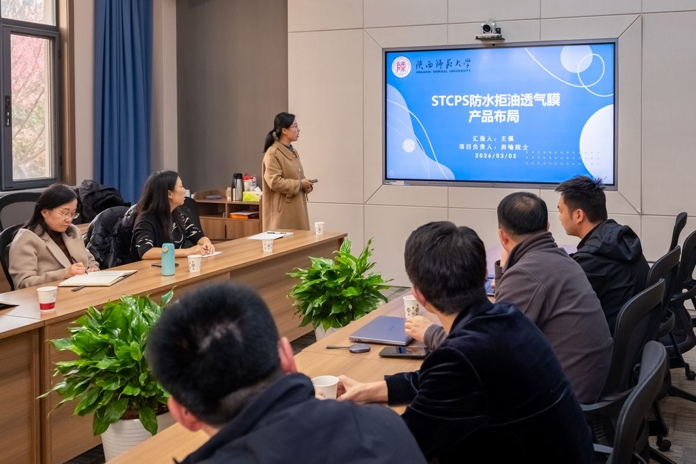 首先,研究院研发工程师王佩、何怡楠分别作了题为《STCPS防水拒油透气膜产品布局》和《宽频低损耗无频散介电常数可定制材料的创制及应用探索》的专题报告,随后双方就加强沟通联系、推进研究院成果转移转化进行了座谈交流。最后,秦创原路演中心一行还与陕西师范大学化学化工学院院长刘成辉进行了座谈交流。