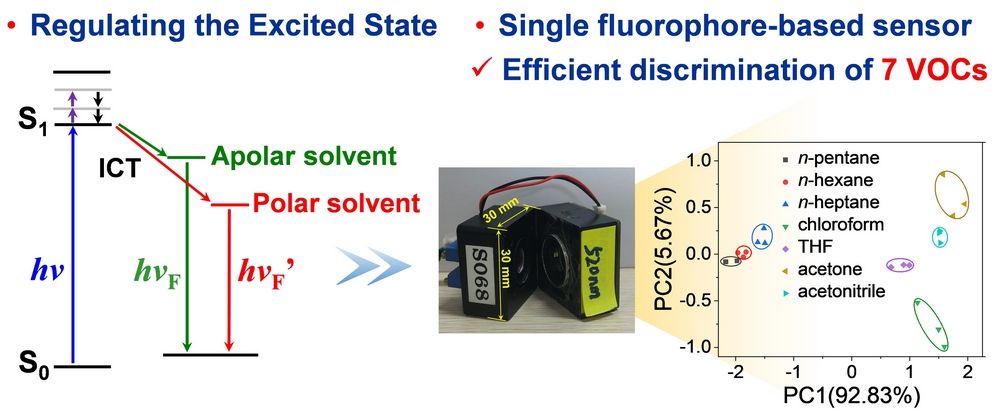 12. 基于ICT效应的激发态动力学调控用于构筑单一荧光分子传感阵列区分VOCs气体