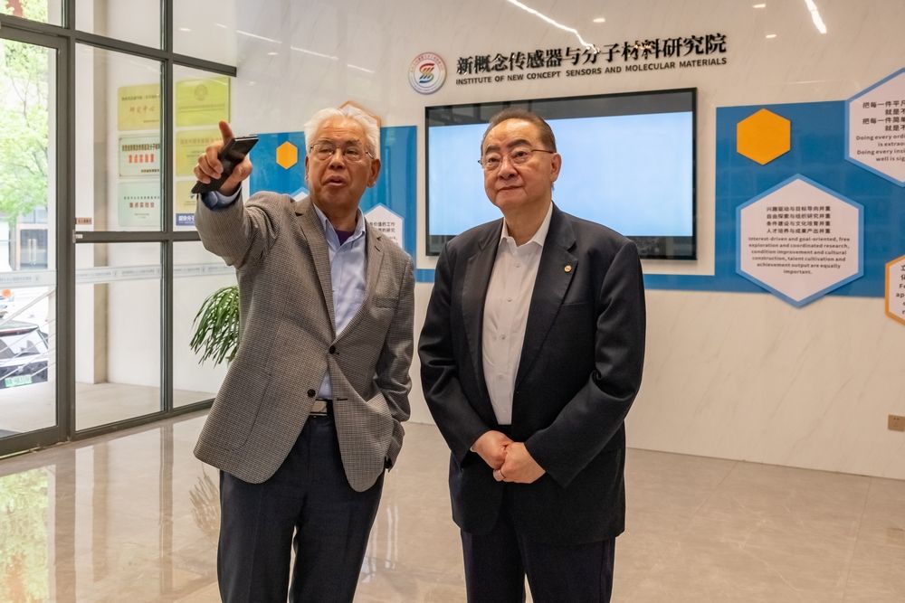 On April 9, 2026, Cheng Zhengdi, a member of the National Academy of Engineering and an internationally renowned scientist in the field of polymer science, visited the Institute of New Concept Sensors and Molecular Materials at Shaanxi Normal University. Accompanied by Prof. Fang Yu, he toured the institute’s exhibition room and learned about its basic profile, development philosophy, research directions, technological strengths, research achievements, and strategic planning.
