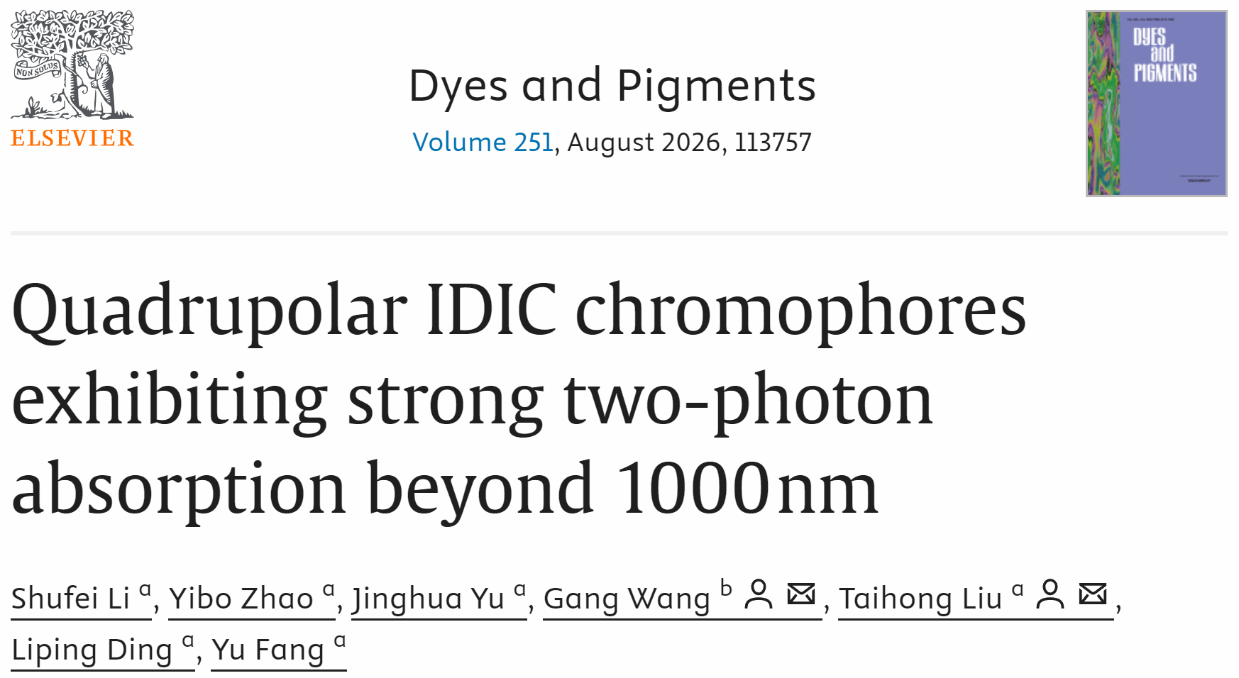 Shufei Li, Yibo Zhao, Jinghua Yu, Gang Wang*, Taihong Liu*, Liping Ding, and Yu Fang. Dyes Pigments, 2026, 251, 113757, DOI: 10.1016/j.dyepig.2026.113757