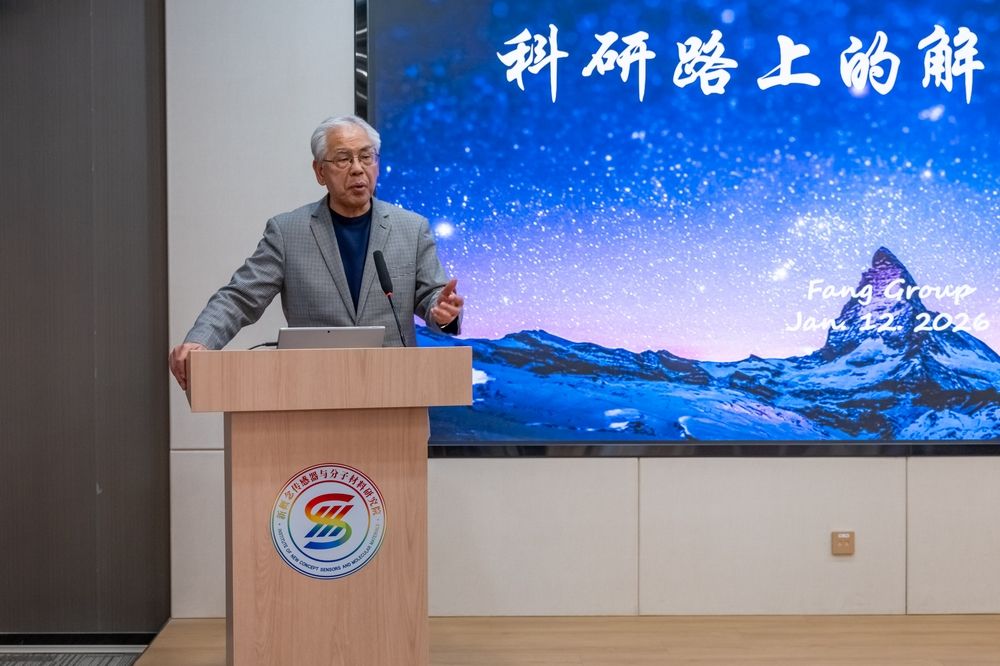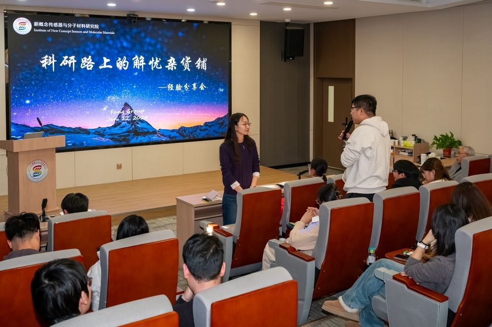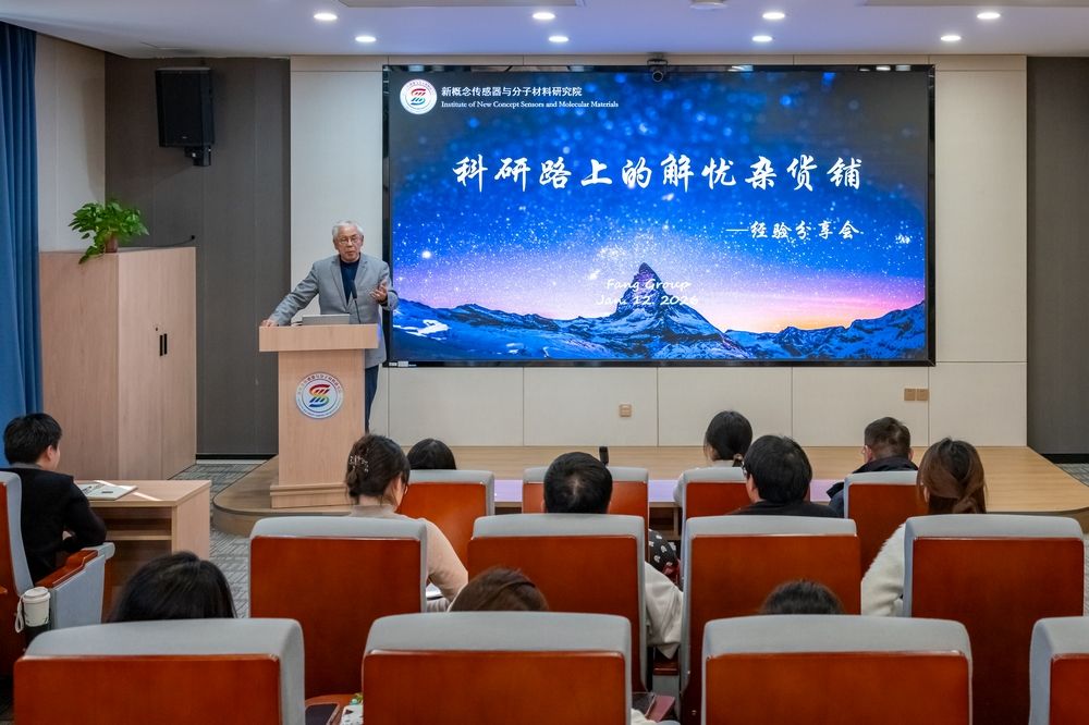 2026年1月12日下午,陕西师范大学新概念传感器和分子材料研究院举办了题为“科研路上的解忧杂货铺”的房喻院士团队师生科研经验分享会,由赵智豪老师、刘向泉博士和李晶博士分享了他们的科研经历与心得、思考,为同学们提供经验借鉴与精神激励。分享会由彭灵雅老师主持,房喻院士及其博士和硕士研究生出席。