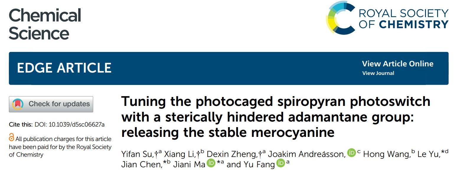 Yifan Su,† Xiang Li,† Dexin Zheng,† Joakim Andreásson, Hong Wang, Le Yu,* Jian Chen,* Jiani Ma,* and Yu Fang. Chem. Sci., 2025, DOI: 10.1039/d5sc06627a