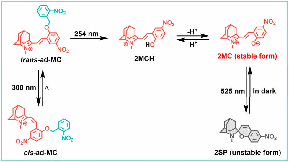 近日,陕西师范大学马佳妮教授团队在《Chemical Science》上发表题为"Tuning the photocaged spiropyran photoswitch with a sterically hindered adamantane group: releasing the stable merocyanine"的研究论文。该研究设计了一种新型螺吡喃基光开关分子ad-MC,首次实现了稳定荧光花菁染料(2MC)的光控释放,为化学生物学应用提供了新的工具。