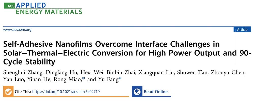 Shenghui Zhang#, Dingfang Hu, Hexi Wei, Binbin Zhai, Xiangquan Liu, Shuwen Tan, Zhouyu Chen, Yan Luo, Yinan He, Rong Miao*, Yu Fang*. ACS Appl. Energy Mater. 2025, DOI: 10.1021/acsaem.5c02719